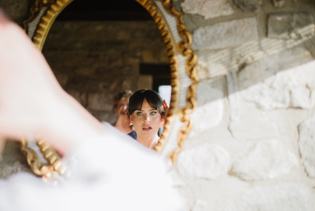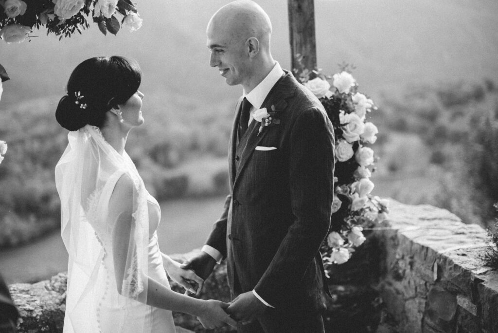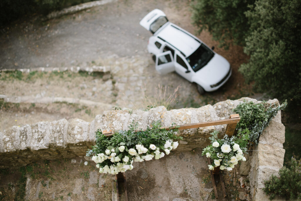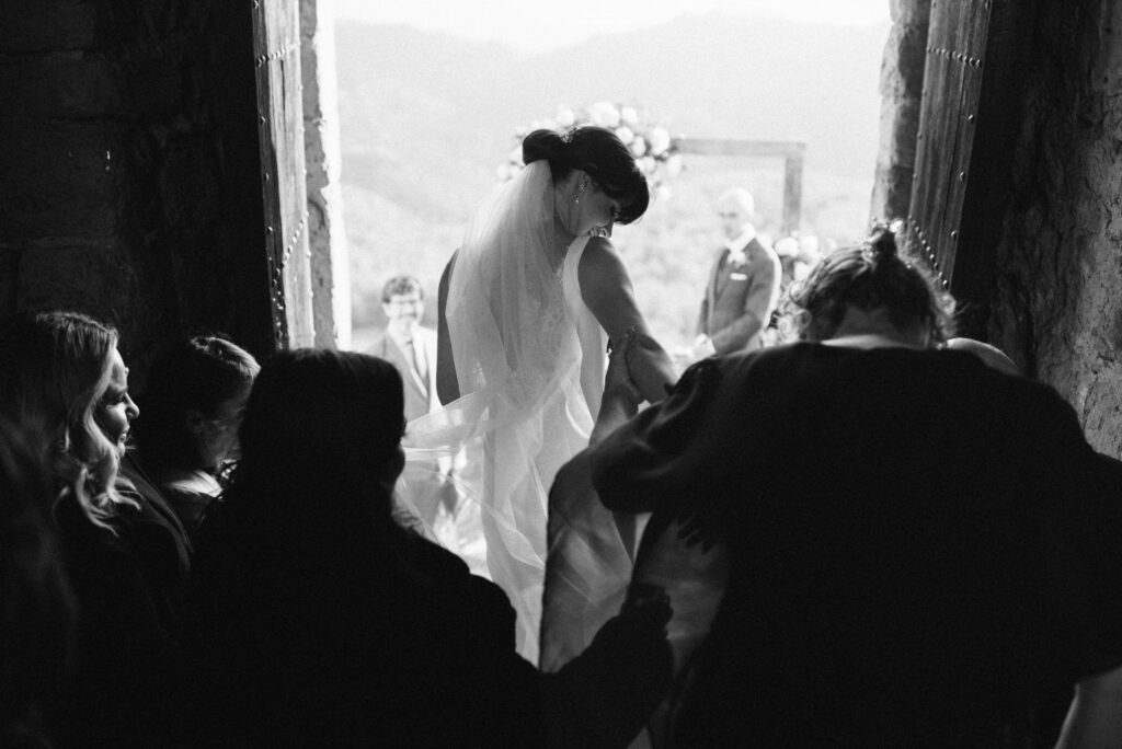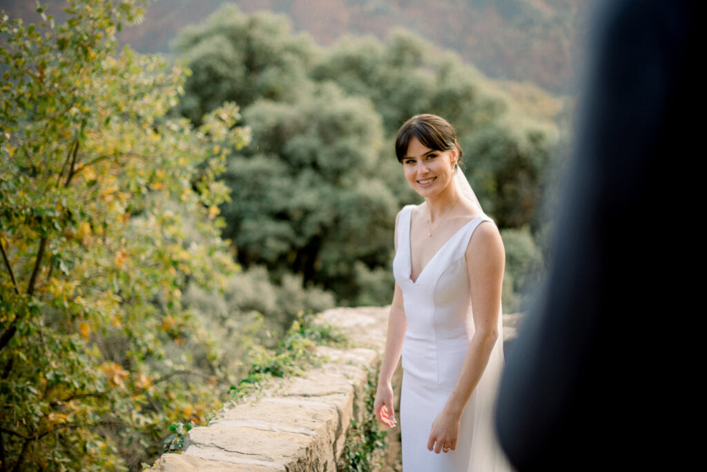 My favorite spot for the ceremony is the staircase overlooking the mountains. There, with the horizon as your witness and the wind whispering promises, every “I do” feels even more profound. It’s a place where time stands still, and the connection between you and nature becomes tangible, wrapping each photograph in a pure and organic atmosphere.